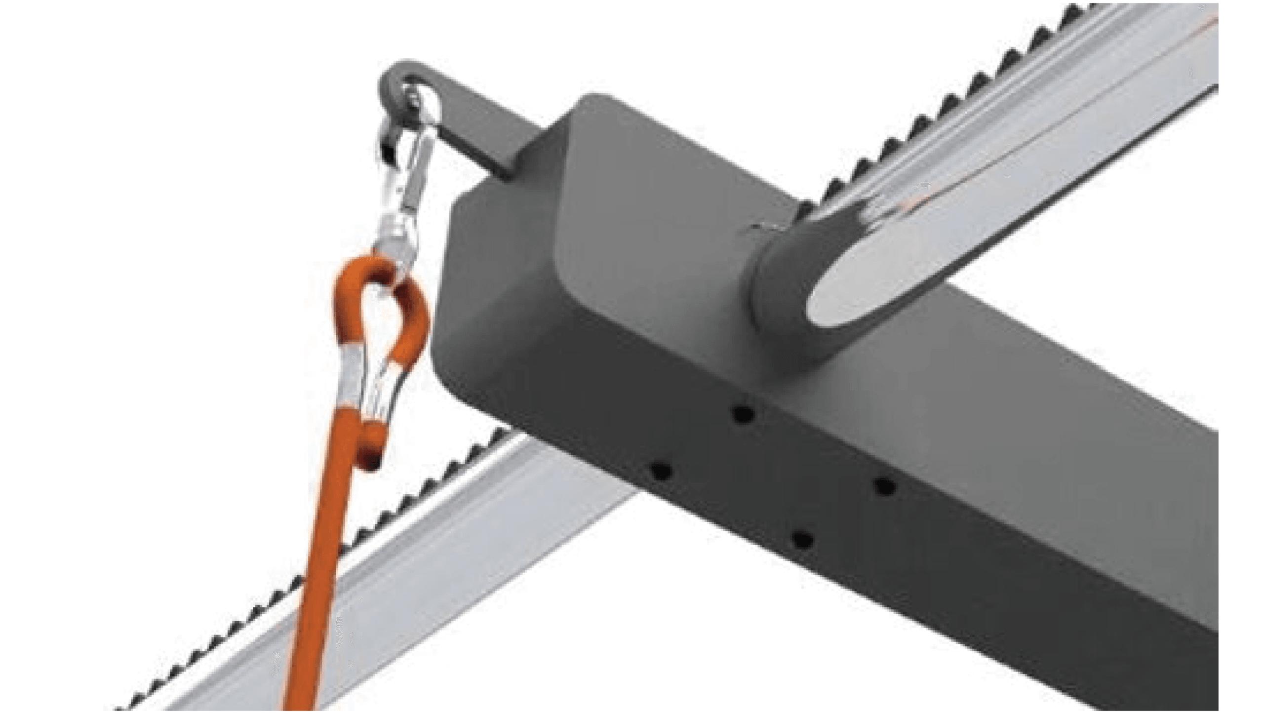 Sling dapat digeser dengan halus pada rel dan dikunci dengan sistem pengunci bergigi, memastikan posisi tetap aman selama terapi berlangsung.