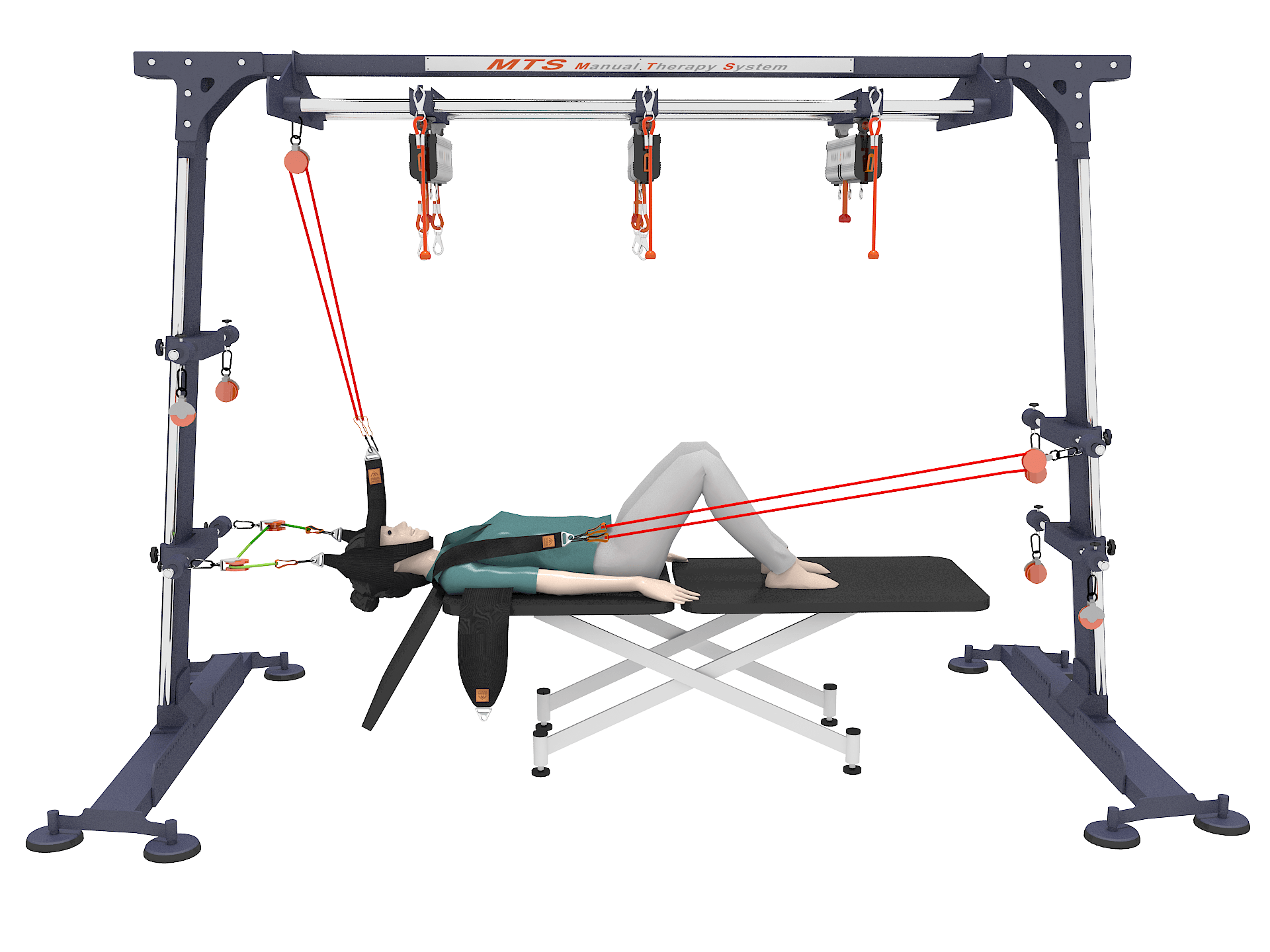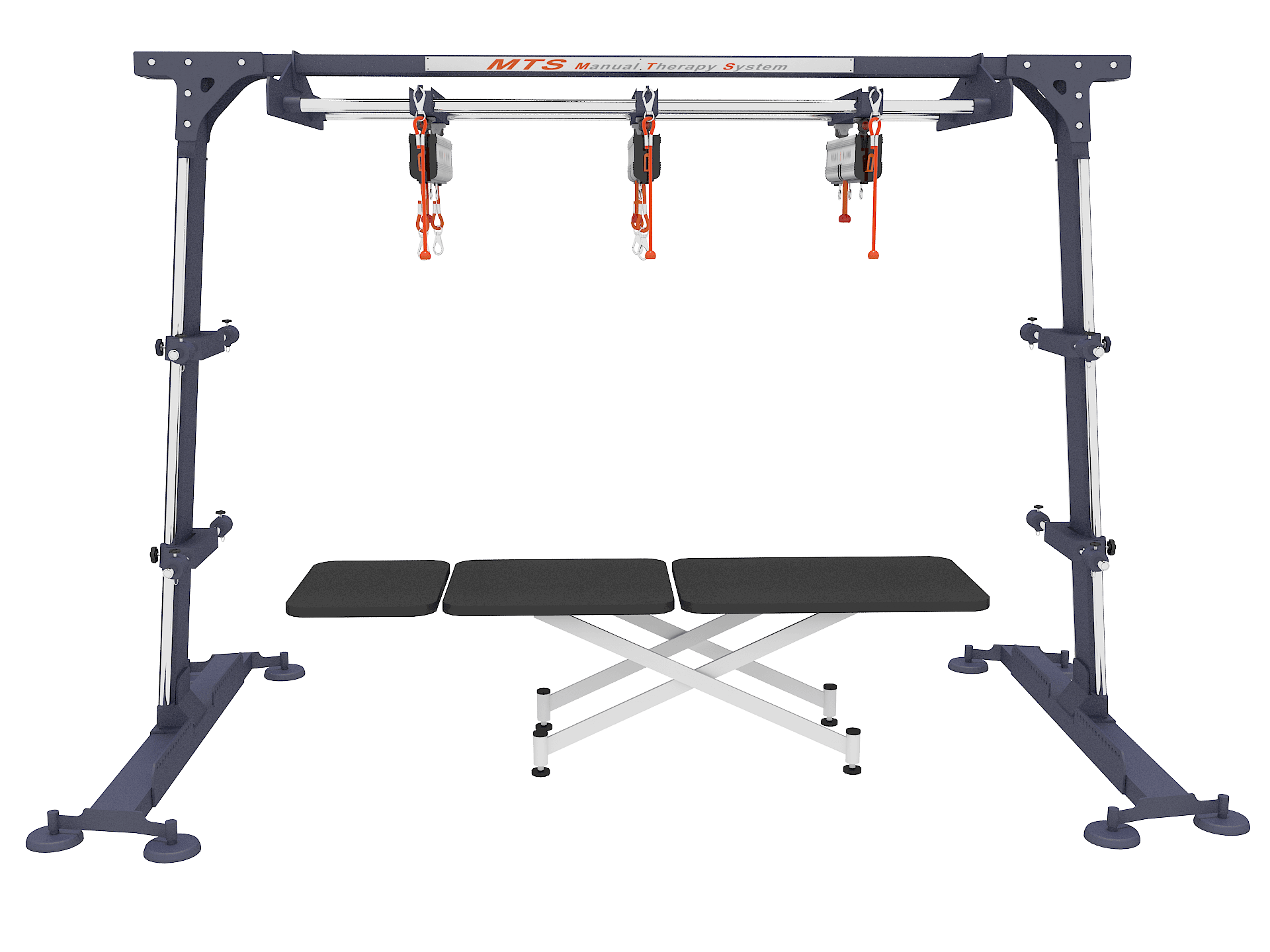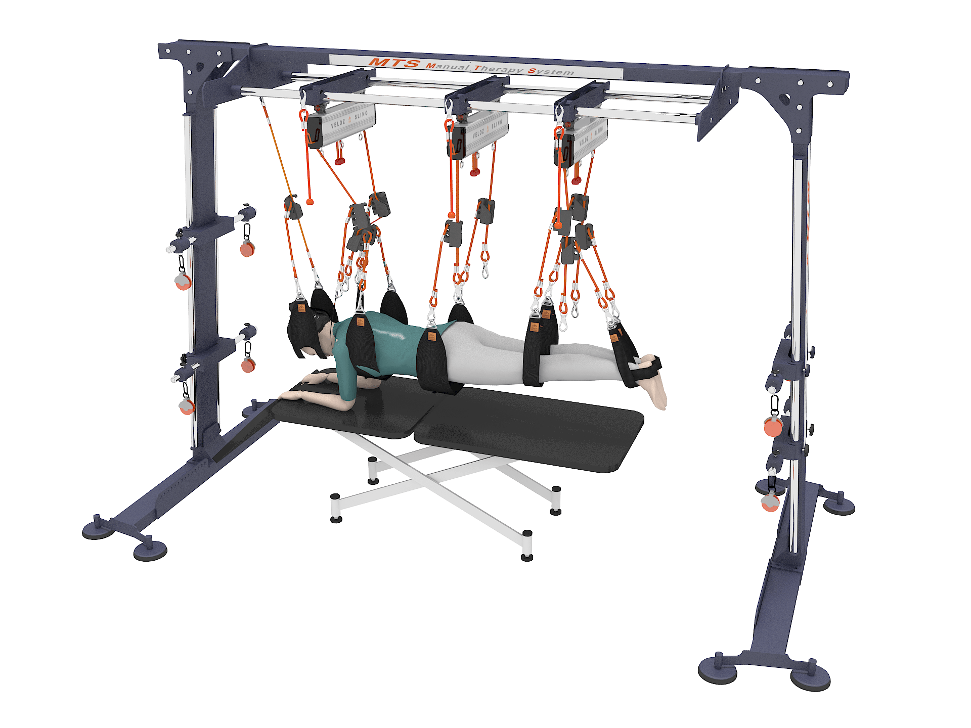 Dengan mekanisme sliding rail dan locking system, terapis dapat dengan mudah mengatur posisi sling sesuai kebutuhan terapi. Manual Therapy System juga mendukung traksi.