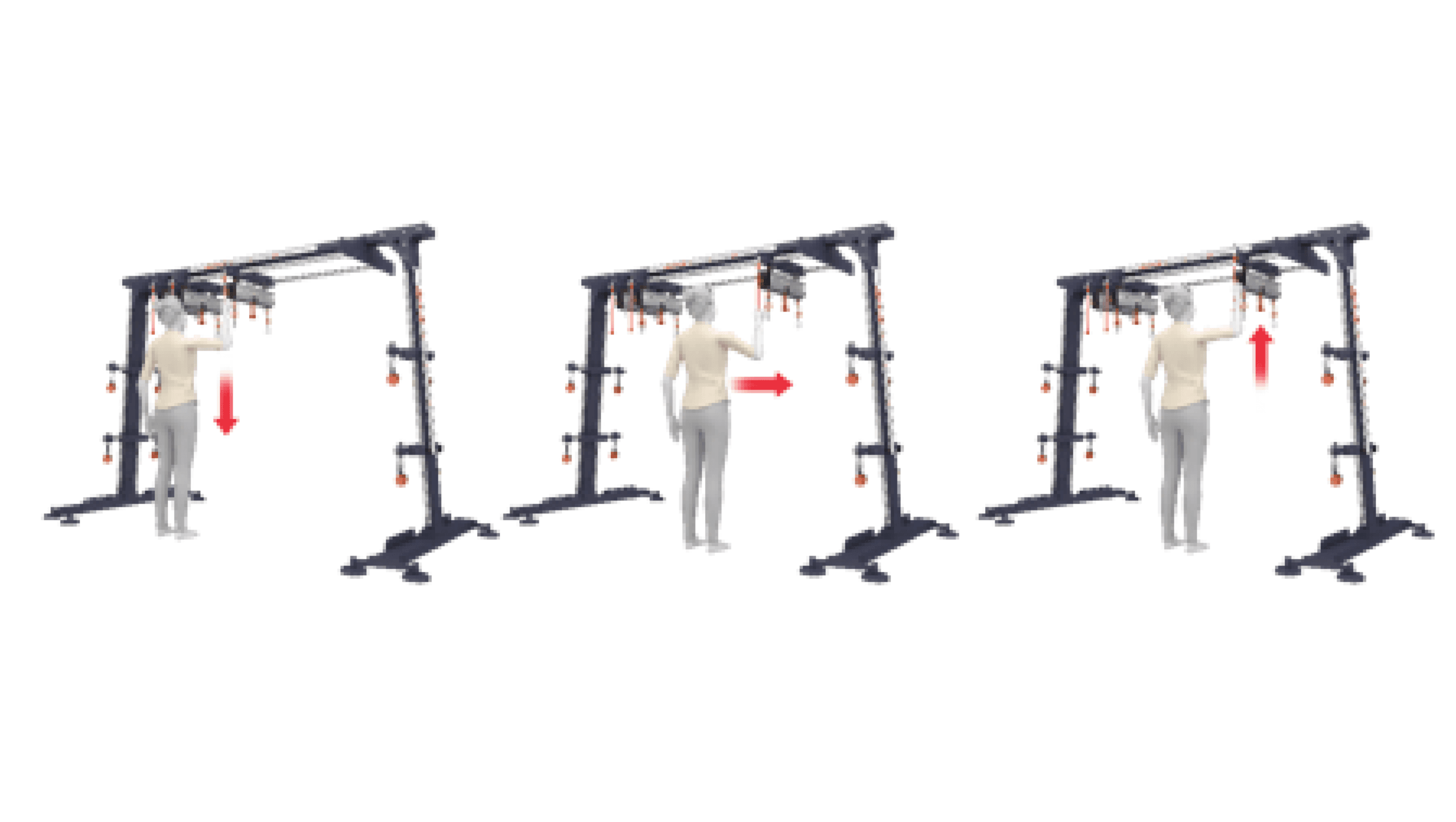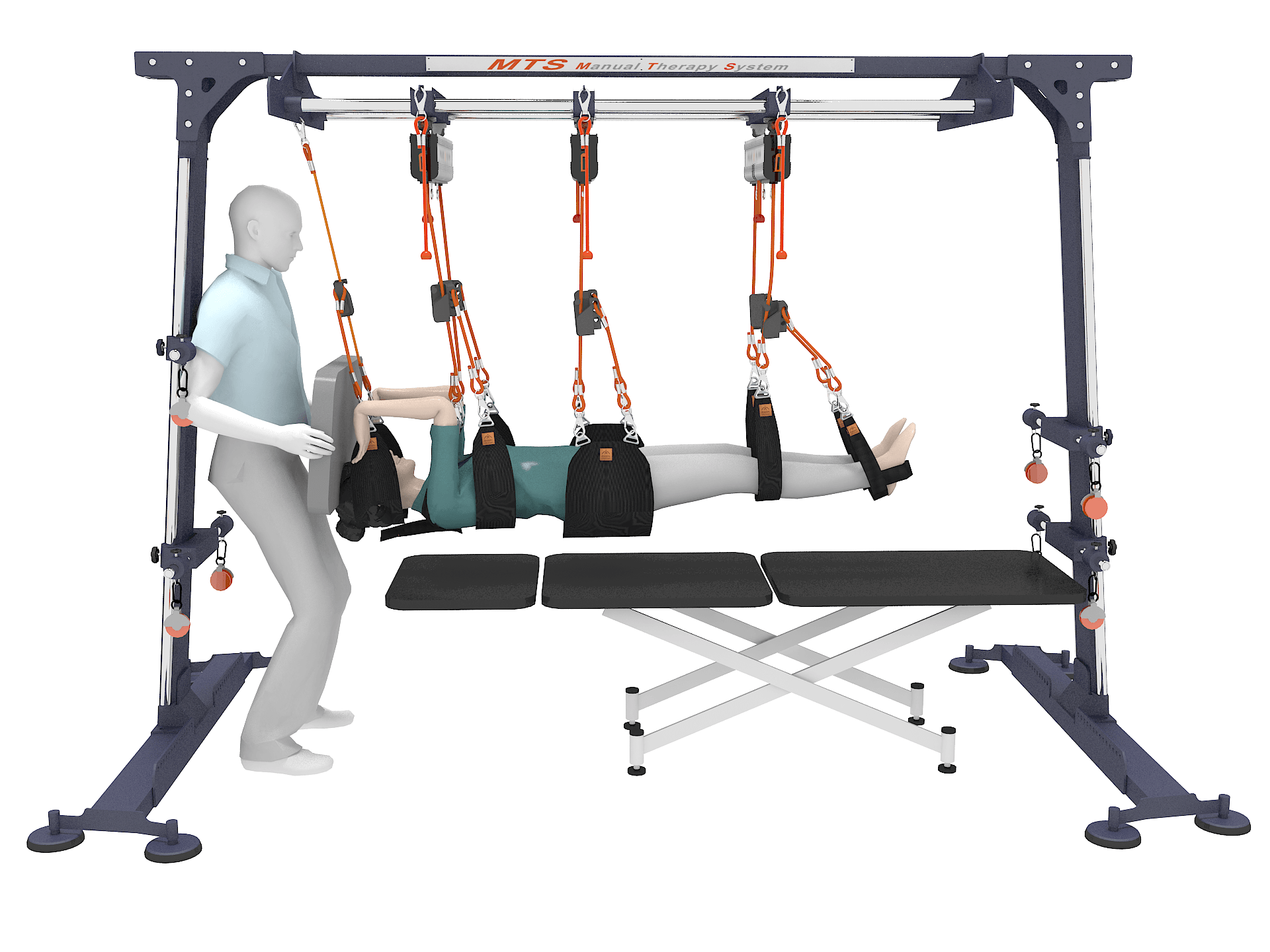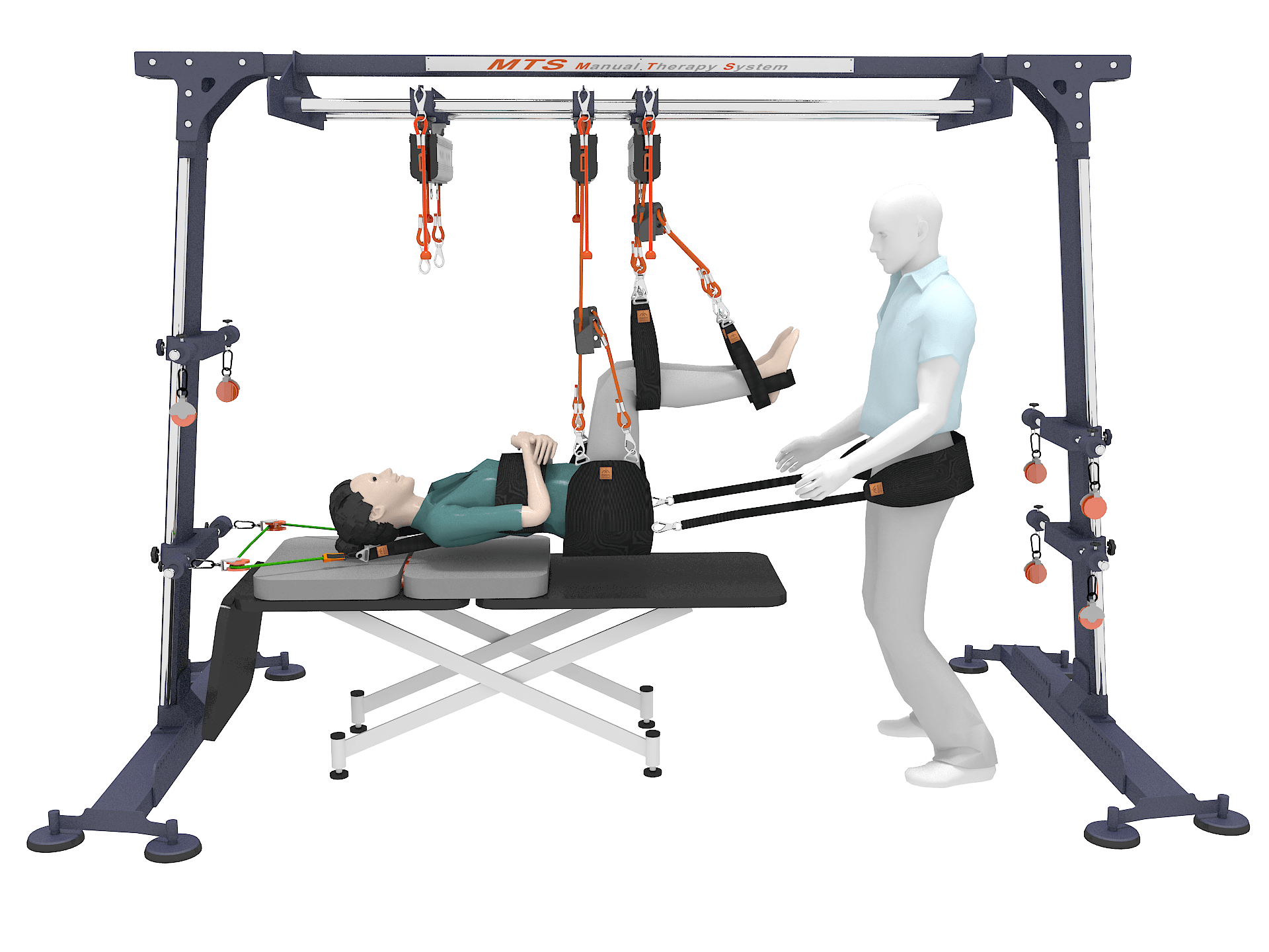 Dengan mekanisme sliding rail dan locking system, terapis dapat dengan mudah mengatur posisi sling sesuai kebutuhan terapi. Manual Therapy System juga mendukung traksi.