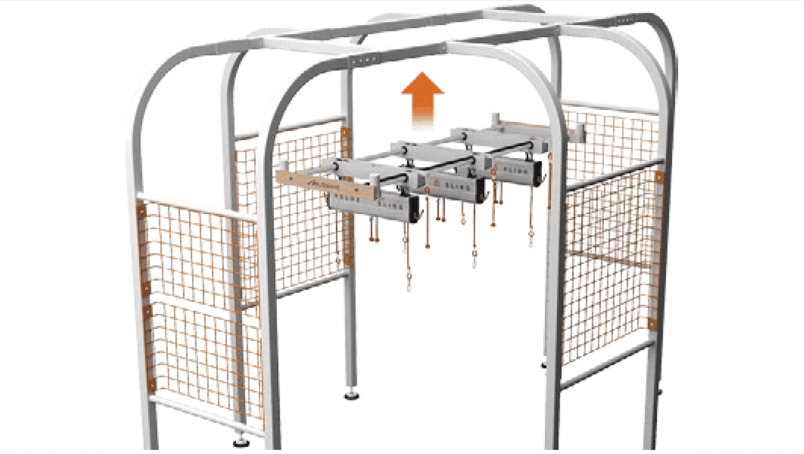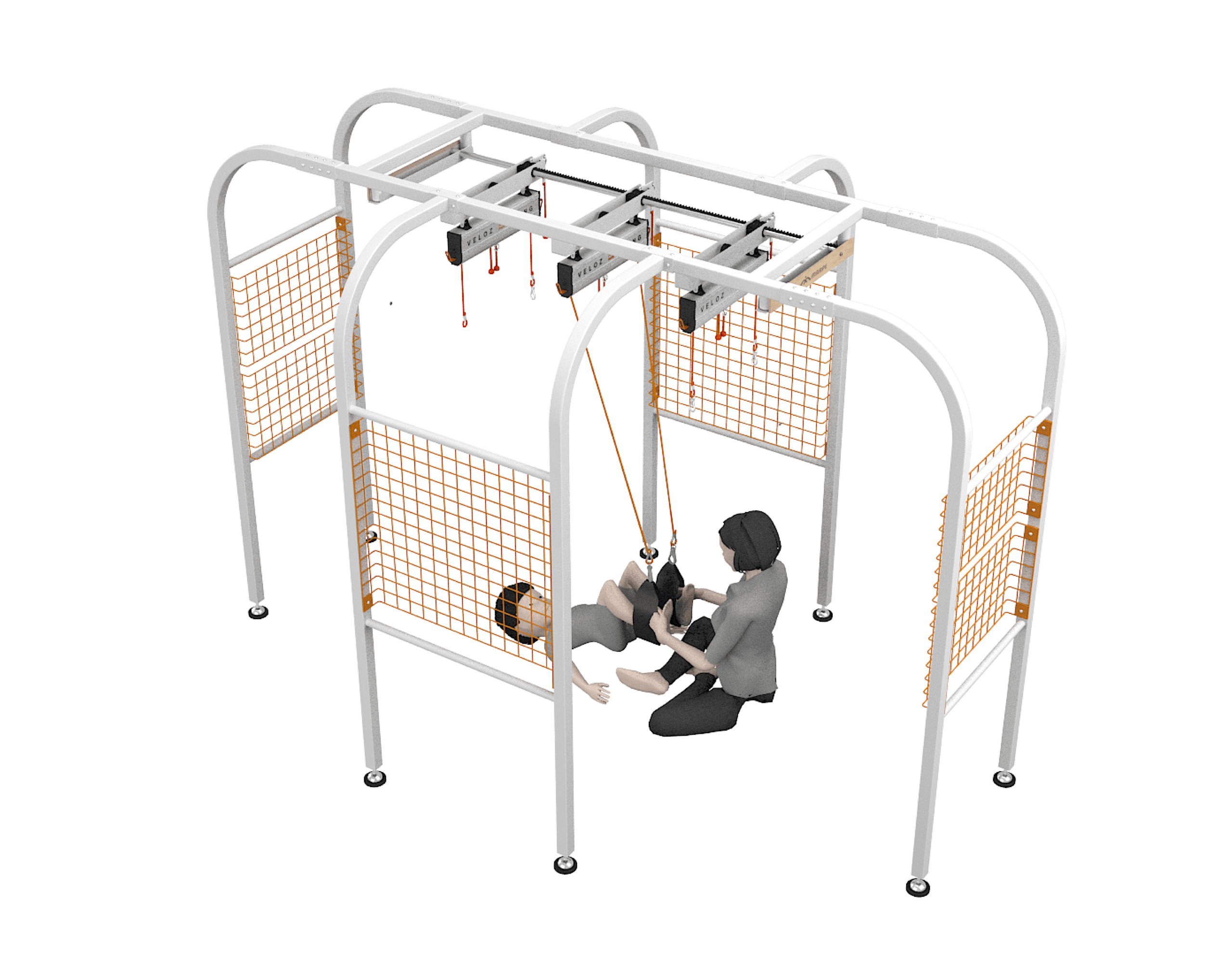 Ketiga sling dapat digeser dengan mudah di atas dua round bar dan dikunci secara aman menggunakan toothed locking device, memungkinkan pengaturan posisi yang presisi dan stabil selama terapi.