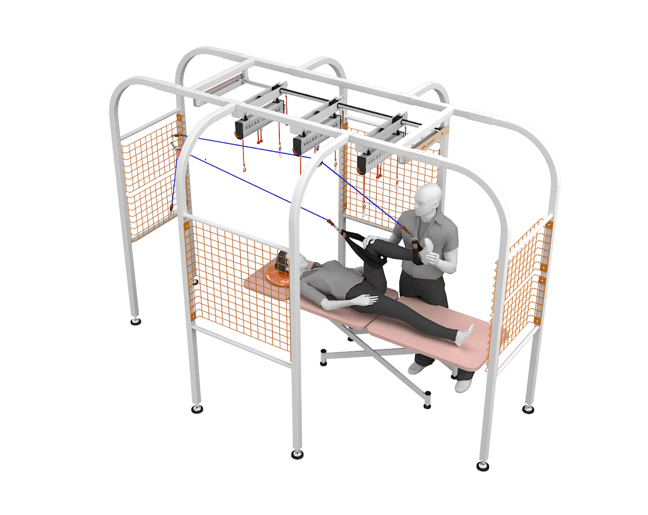Physical Training System (PTS) adalah alat rehabilitasi fisioterpi berbasis Sling Therapy yang dirancang untuk mendukung berbagai latihan terapi fisik secara aman, stabil, dan terkontrol. Sistem ini menggunakan tiga Veloz Sling yang dapat disesuaikan posisinya untuk menopang bagian tubuh tertentu maupun seluruh tubuh selama proses rehabilitasi.